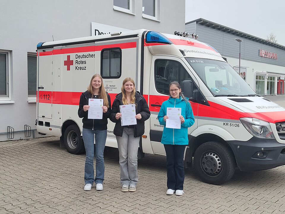 Der DRK-Ortsverein Münzesheim e. V. freut sich, drei neue qualifizierte Gruppenleiterinnen im Jugendrotkreuz begrüßen zu dürfen: Celina, Jana und Milena haben ihre JRK-Gruppenleiterausbildung erfolgreich abgeschlossen.